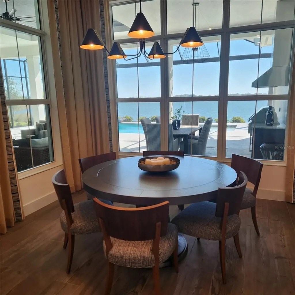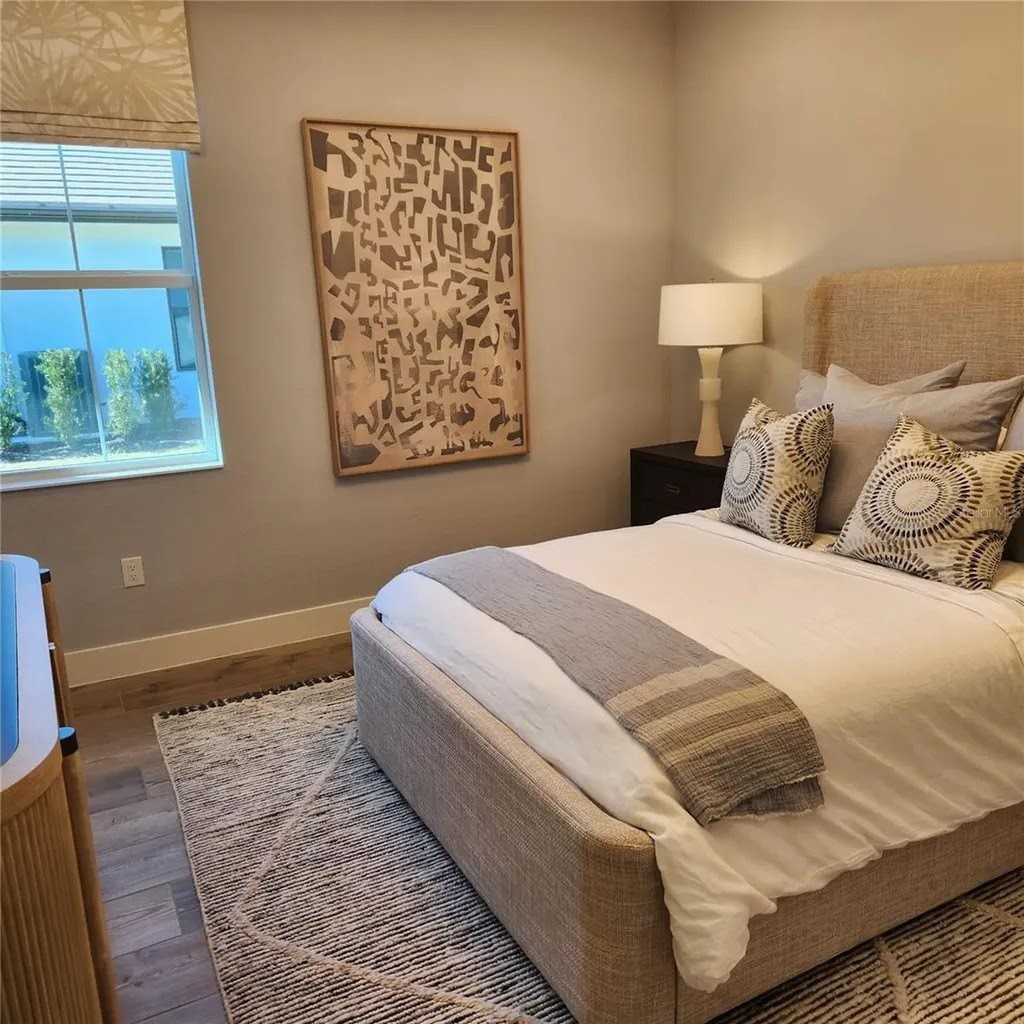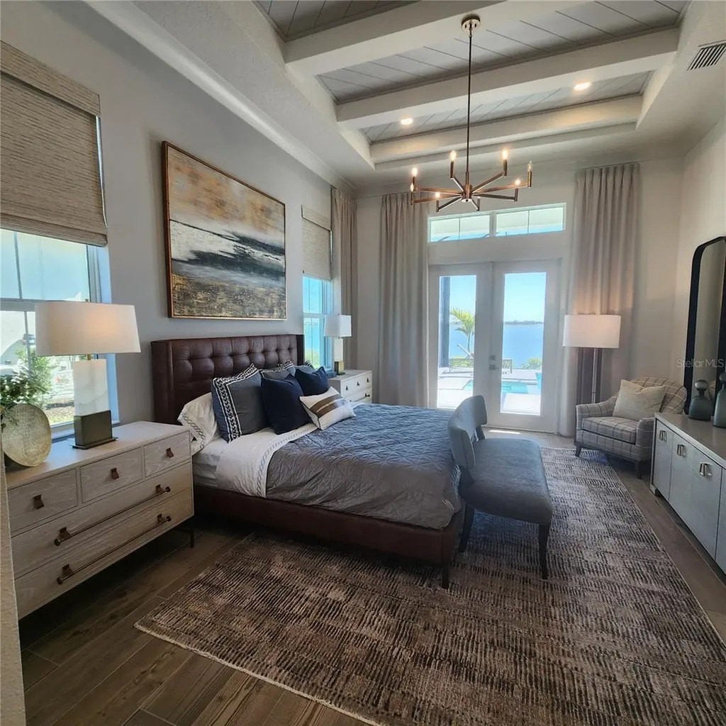 Experience refined lakefront living in this nearly new home in Wild Blue at Waterside, featuring Stock Development's sought-after Stirling IV floor plan. Designed for both comfort and entertaining, this spacious residence offers 3,756 sq ft of beautifully finished interior space with four private bedroom suites-each with walk-in closets and en-suite baths-plus a dedicated den with custom built-ins and a versatile bonus room. The open-concept great room flows seamlessly into the dining area, gourmet kitchen, and breakfast nook, all finished with elegant porcelain tile flooring and enhanced by Bahama shutters and quality window treatments throughout. A well-equipped interior laundry room and three-car garage add everyday convenience. Step outside to your expansive covered poolside living area, complete with outdoor kitchen, bar-top seating, and gas fireplace-all overlooking serene lake views, perfect for relaxing or entertaining year-round. Located in the heart of Waterside at Lakewood Ranch, residents enjoy easy access to the area's newest dining, shopping, and recreation destinations, offering a vibrant, walkable lifestyle. Unfinished and available for a 1-2 year annual lease only. Currently tenant- occupied through April 1, 2026. Interior photos are from Stock Development's furnished model home. Home is rented unfurnished.